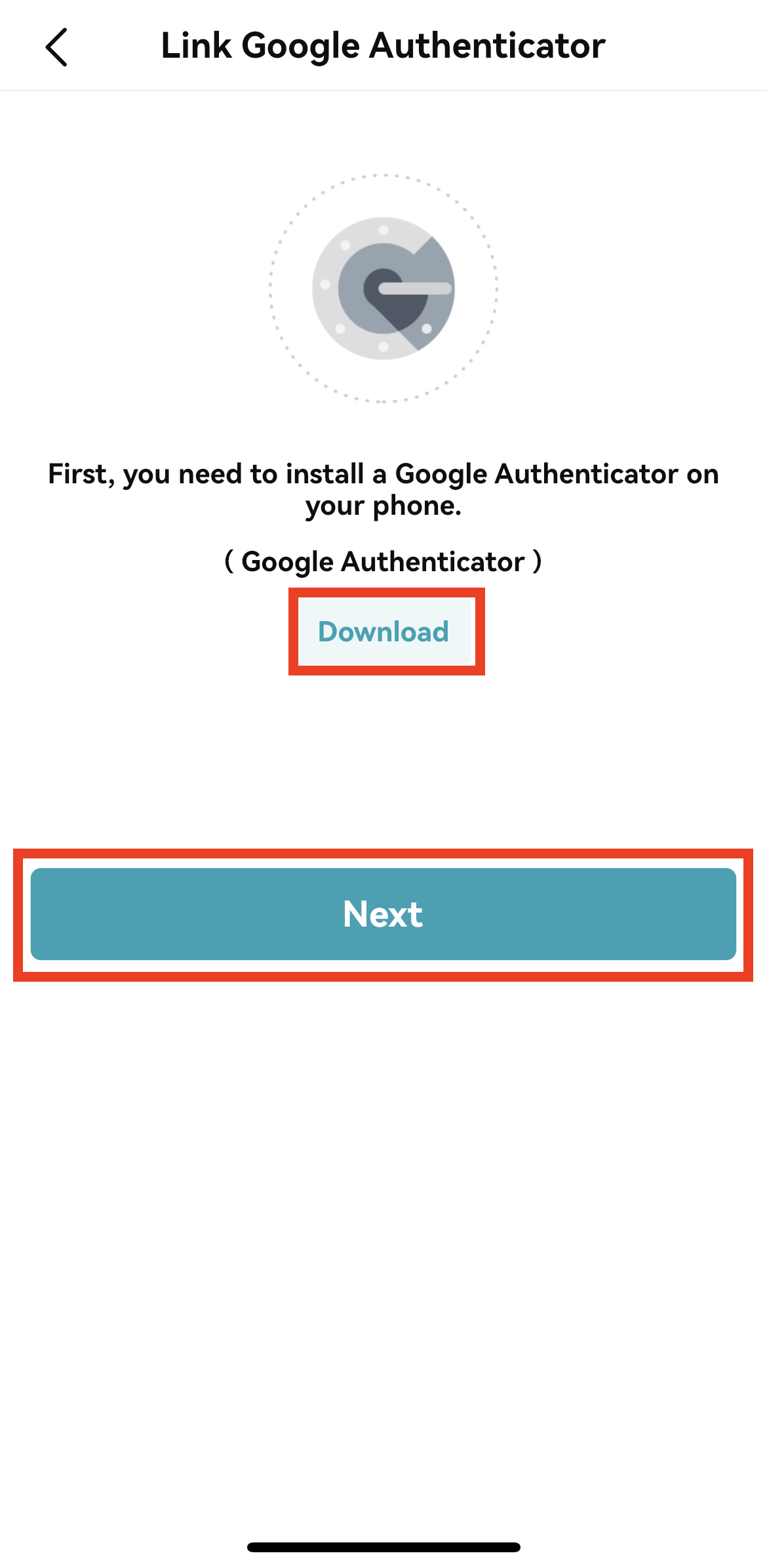 3. Download를 눌러 Google Authenticator 어플을 다운로드하여주시고 Next를 눌러 주세요.