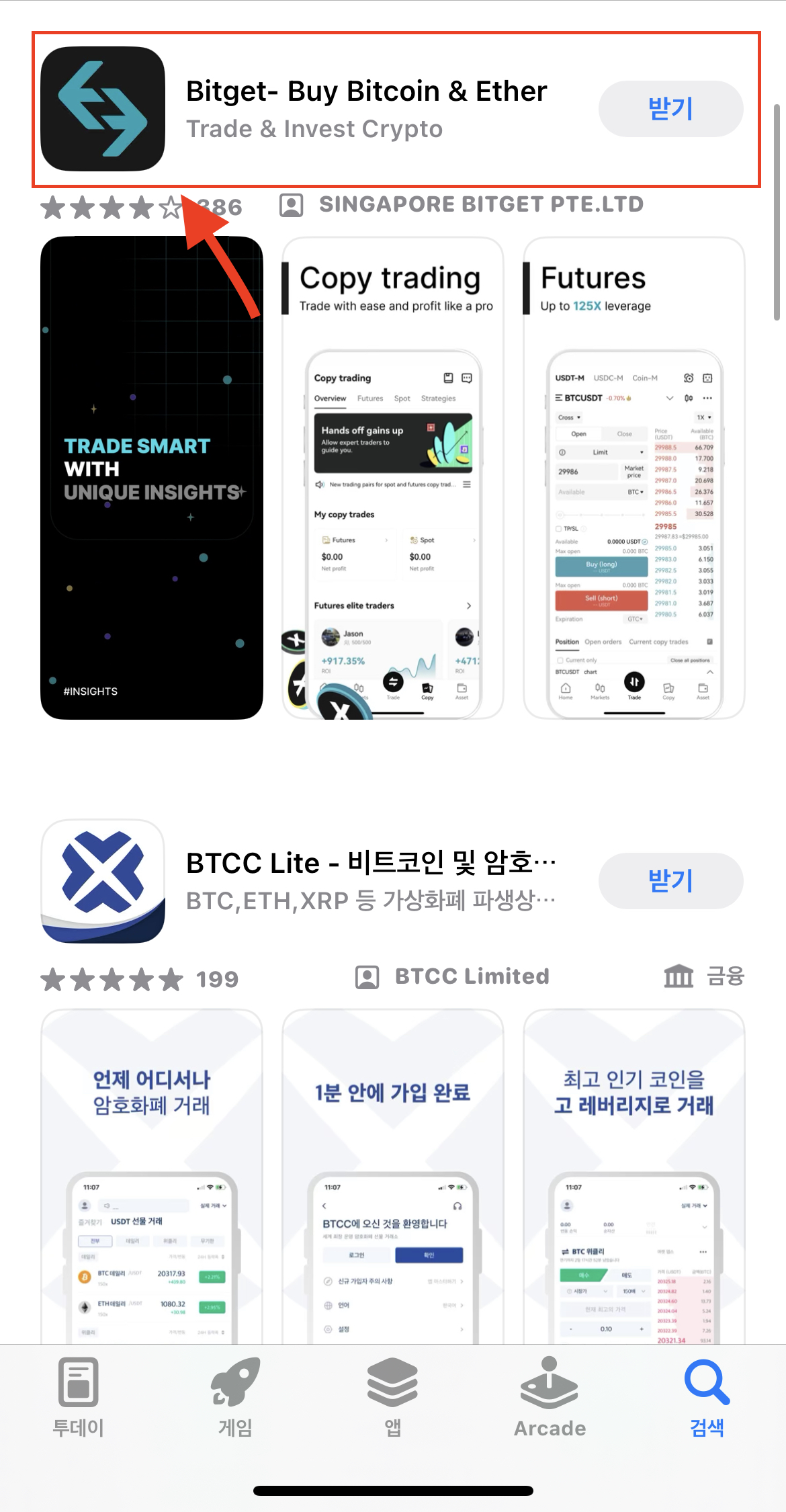 1. 구글 플레이 스토어 혹은 앱스토어에서 비트겟 어플을 다운로드하여 줍니다.