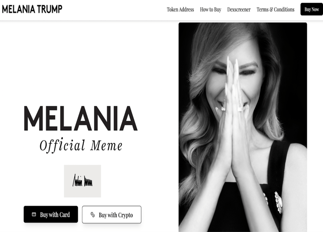 - 공식 사이트: 멜라니아의 이미지를 활용한 독자적인 웹사이트 운영