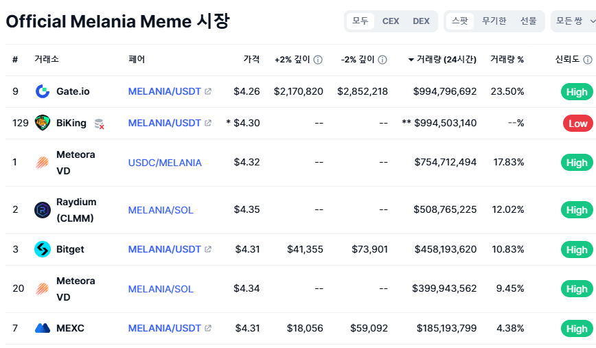 현재 MELANIA 코인은 주요 탈중앙화 및 중앙화 거래소에서 거래가 가능합니다. 거래를 시작하기 전에 이용하려는 플랫폼이 MELANIA를 지원하는지 확인해야 합니다.