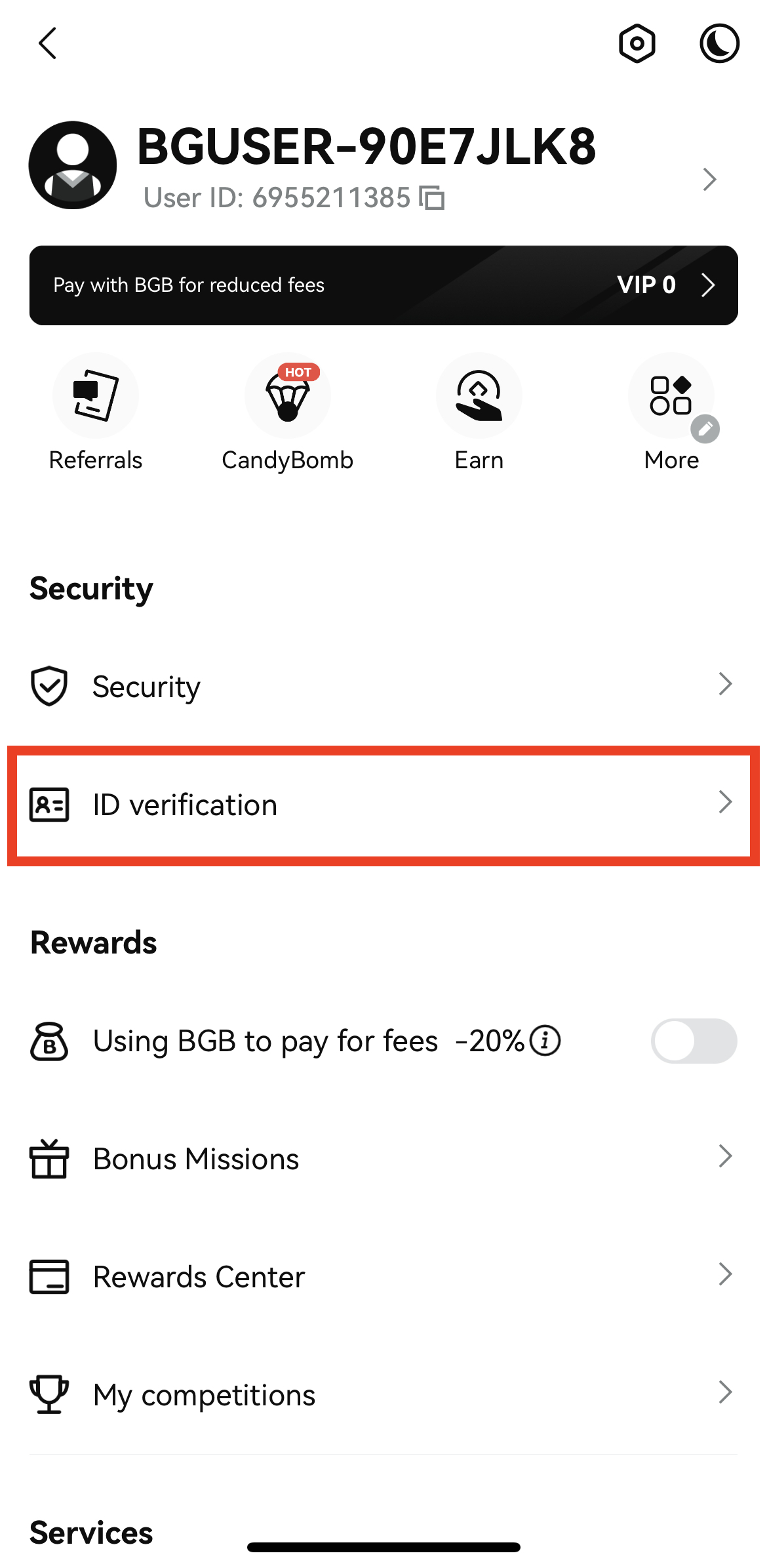 3. 왼쪽 상단의 사람 모양 아이콘을 누르고 ID verification을 눌러 줍니다.