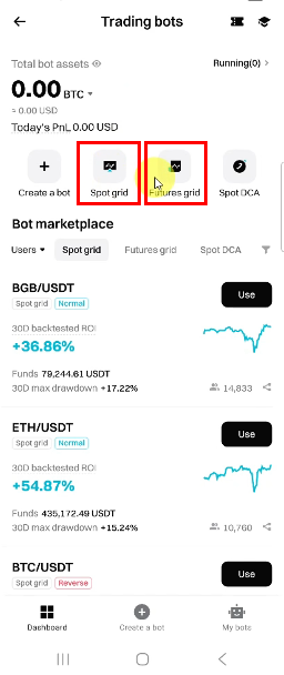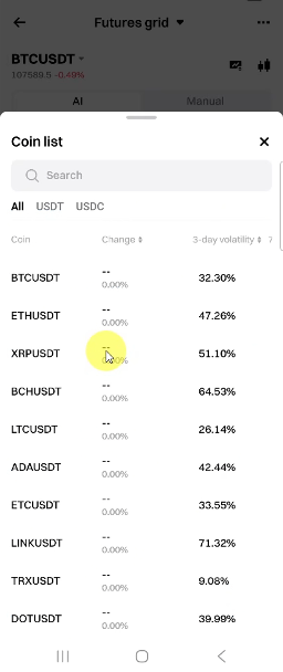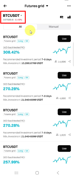 2. [Spot grid] 또는 [Futures grid]로 이동
