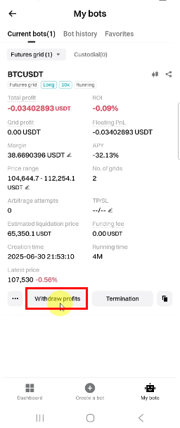 | Automatic profit transfer | 해당 봇의 수익을 자동으로 지갑으로 이동 |