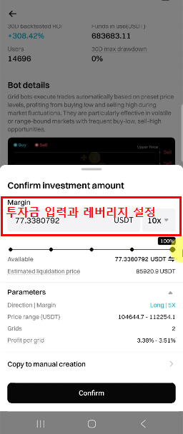 | 투자 금액 (Investment Amount) | 봇에 사용할 자금 입력 (예: 100 USDT) |