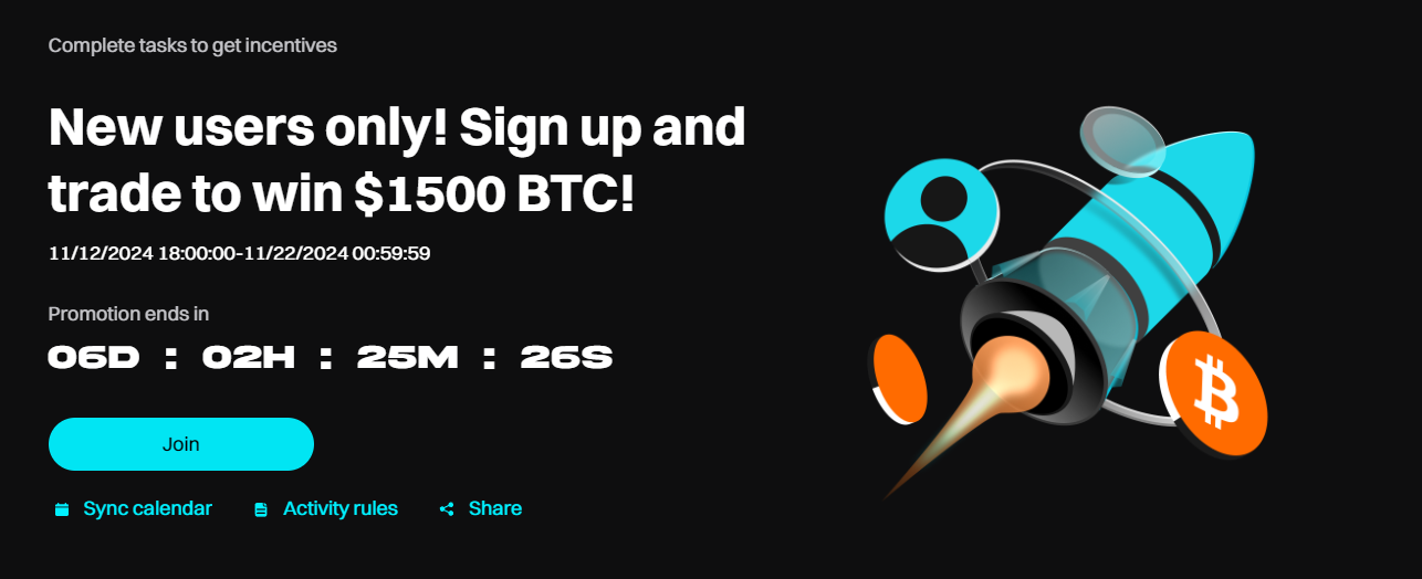 암호화폐 거래를 시작하거나 새로운 플랫폼을 찾고 계신가요? 신규 사용자를 위한 한정 프로모션을 통해 간단한 미션만 완료하면 최대 $1,500 상당의 BTC와 40 USDT를 받을 수 있습니다!