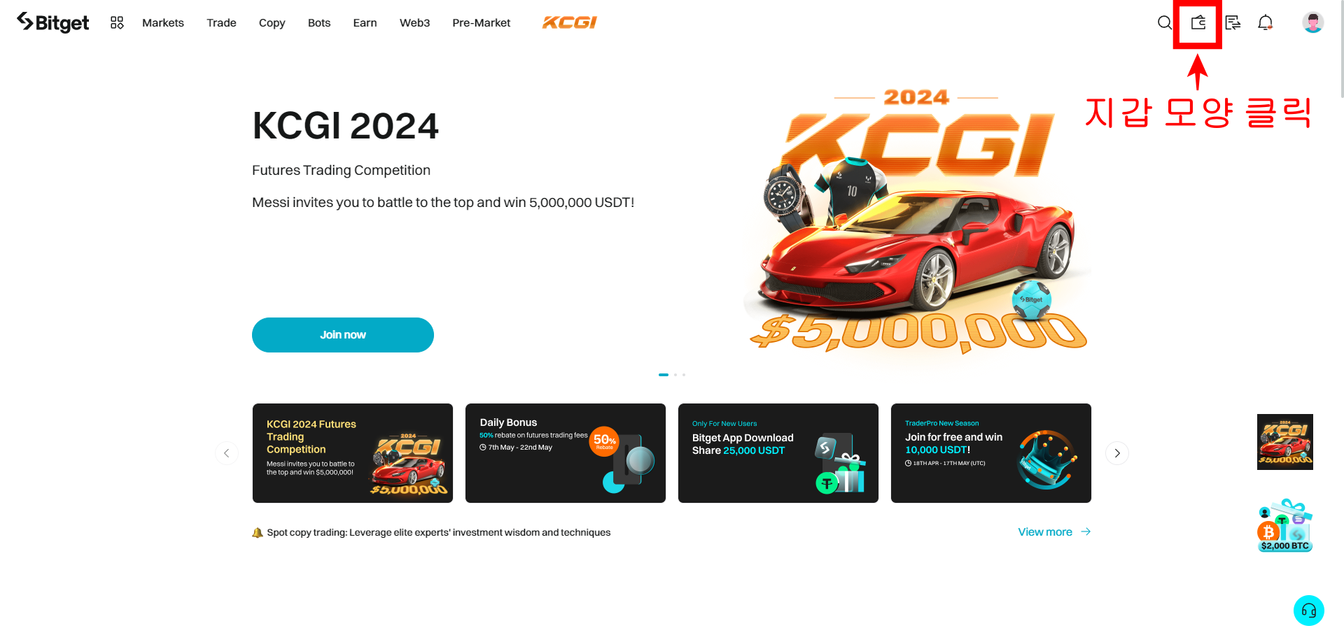 - 먼저 비트겟(Bitget)에 접속하여 로그인합니다. 아직 회원가입이 되어있지 않다면 아래 링크를 통해 가입해 주세요