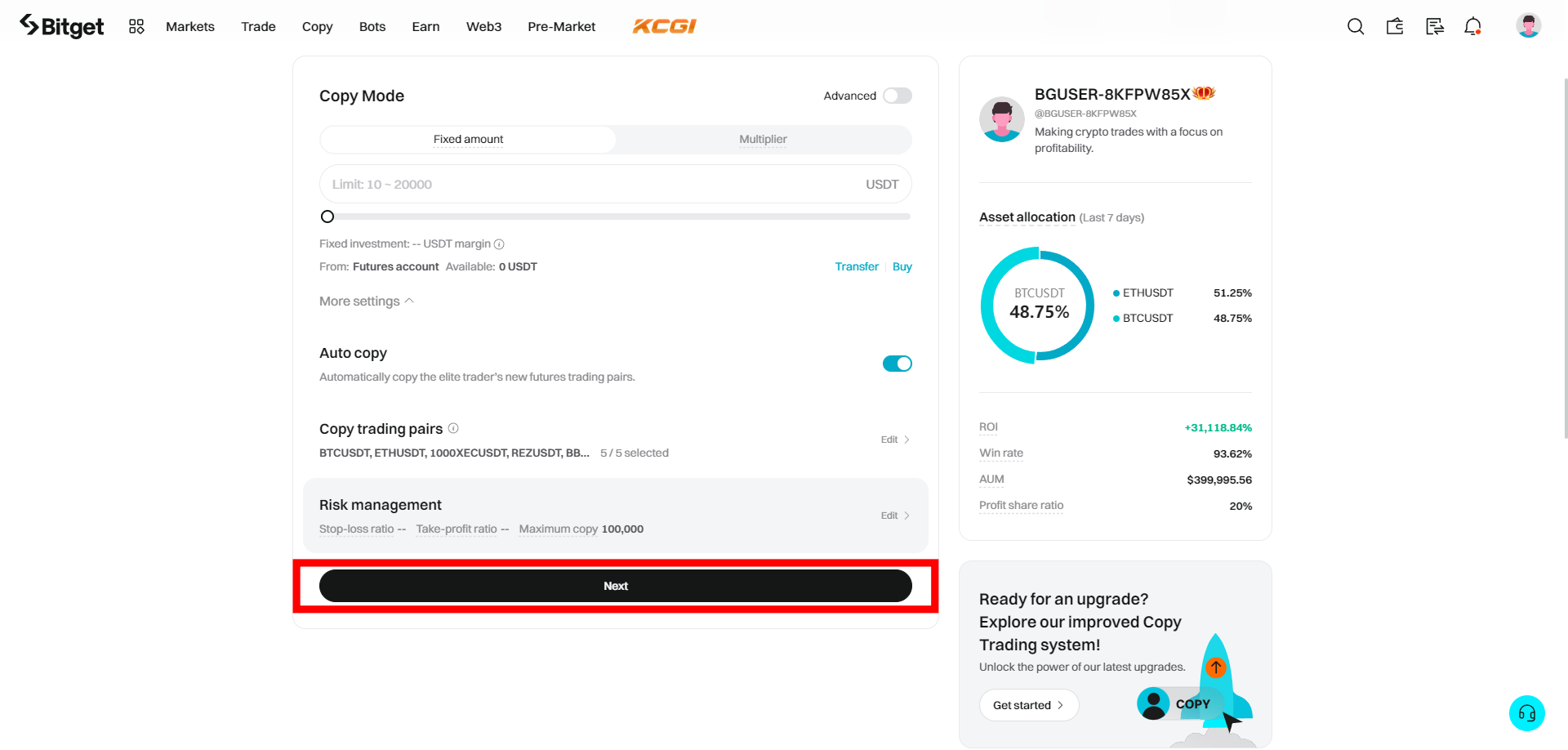비트겟에서는 이러한 카피트레이딩 기능을 제공하고 있으며, 이를 통해 초보자도 쉽게 수익을 낼 수 있습니다.