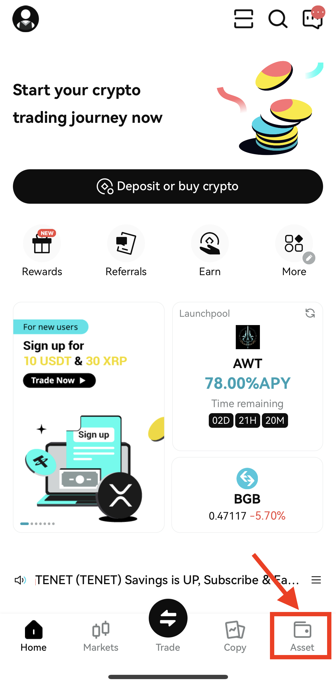 1. 비트겟에 접속해 Asset 버튼 - Spot 탭으로 이동해주세요.