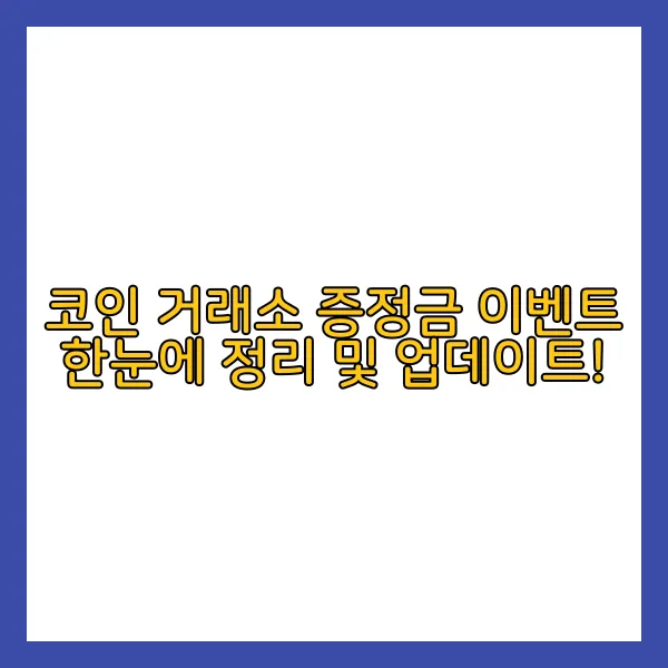 코인 거래소의 이벤트는 각기 다른 조건과 보상을 제공하며, 이를 통해 사용자에게 다양한 혜택을 제공합니다. 거래소별로 자세히 알아보겠습니다.