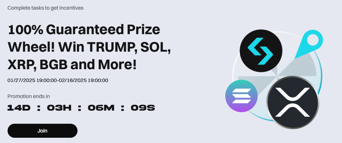 지금 비트겟에서 100% 당첨 확률을 자랑하는 럭키 드로우 이벤트에 참가하세요!