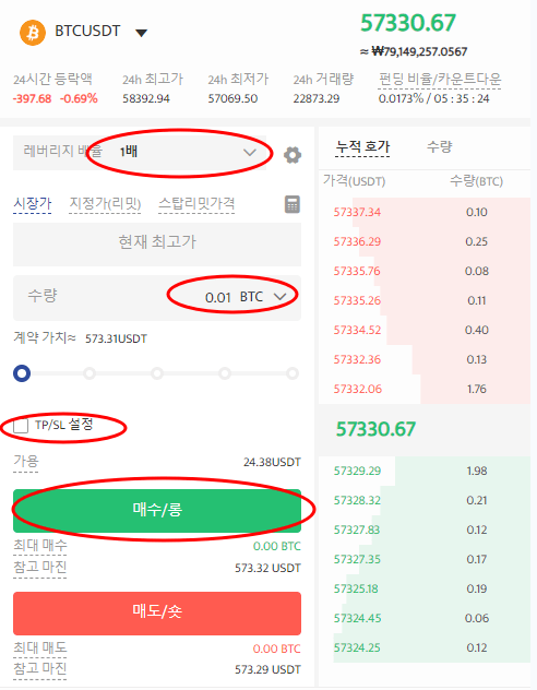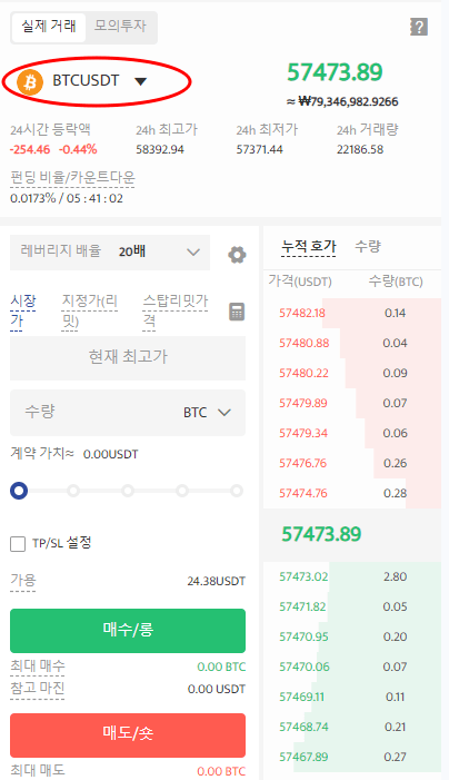 2. 매수(롱) 또는 매도(숏)할 계약을 선택하세요.