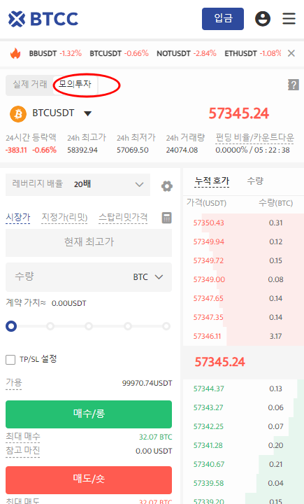 BTCC는 10,000 USDT의 가상 자금을 제공하는 모의 투자를 지원하여, 초보자도 리스크 없이 연습할 수 있습니다.
