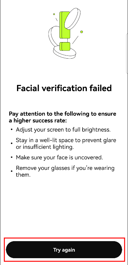인식이 실패했을 경우, 'Try again'을 눌러 다시 진행해 줍니다.
