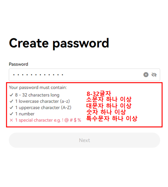 모든 조건에 만족하면 'Next' 버튼이 활성화됩니다.