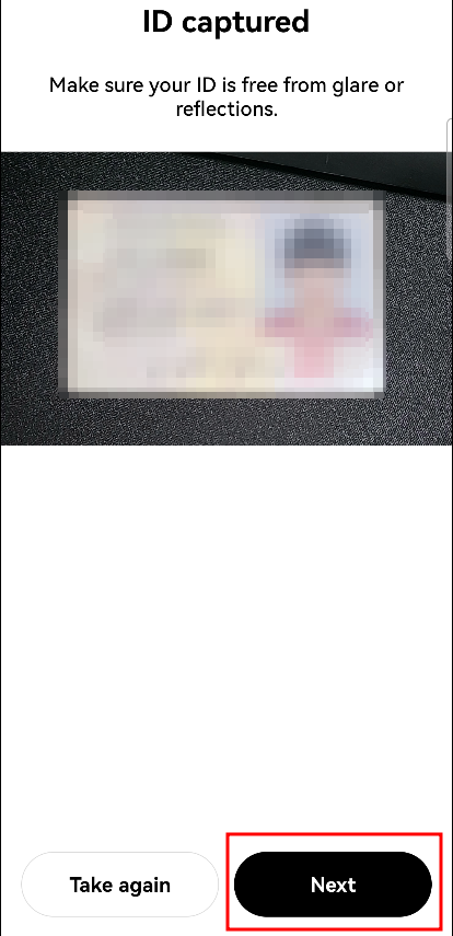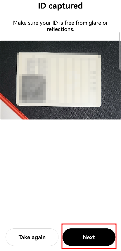 다음으로 넘어가려면 'Next', 다시 촬영하고 싶으면 'Take again'을 눌러줍니다.
