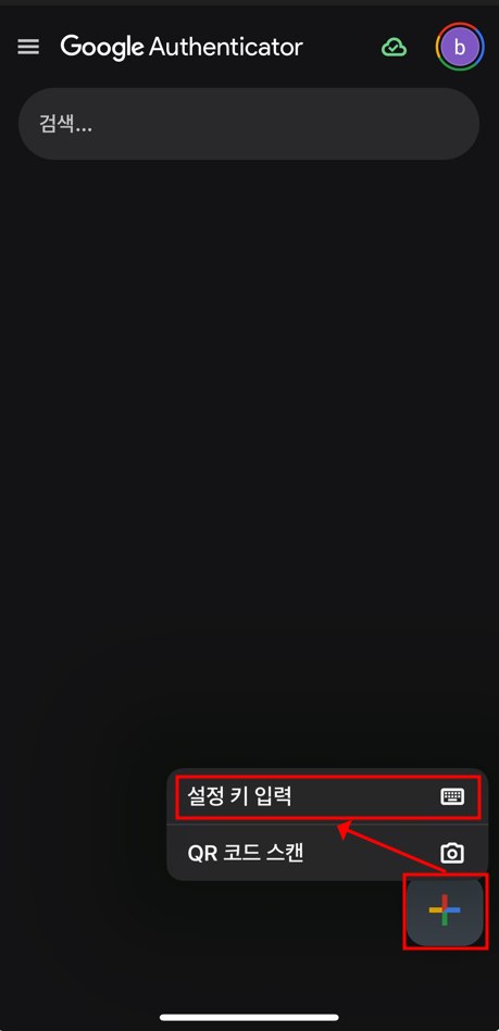 오른쪽 하단의 '+'모양 버튼을 누른 후 '설정 키 입력'을 눌러줍니다.