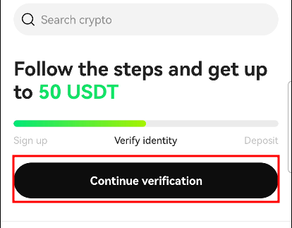 신분증 인증이 완료되었으면 홈 화면에서 'Continue cerification'을 눌러줍니다.