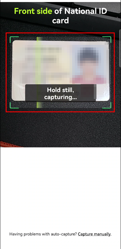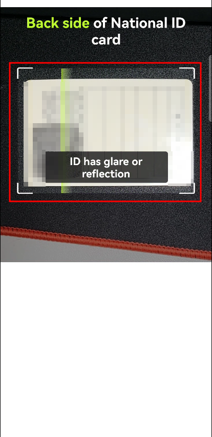 빛 반사가 되지 않는 곳에 신분증을 두고 네모칸에 맞춰주면 자동으로 인식됩니다.