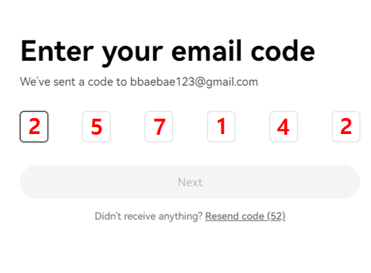 기입하신 이메일로 온 인증번호를 입력하면 다음으로 넘어갑니다.