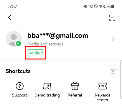 일정시간이 지난 후 어플 메인 화면에서 왼쪽 상단의 점모양을 눌러 들어간 뒤 화면 상단의 프로필 칸에 'Verified'라고 초록색 글자가 있으면 본인증이 완료된 것입니다.