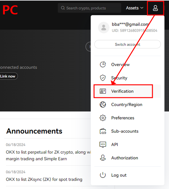 PC로 진행하시는 분은 오른쪽 상단의 '프로필' -> 'Verification'을 눌러주시고,