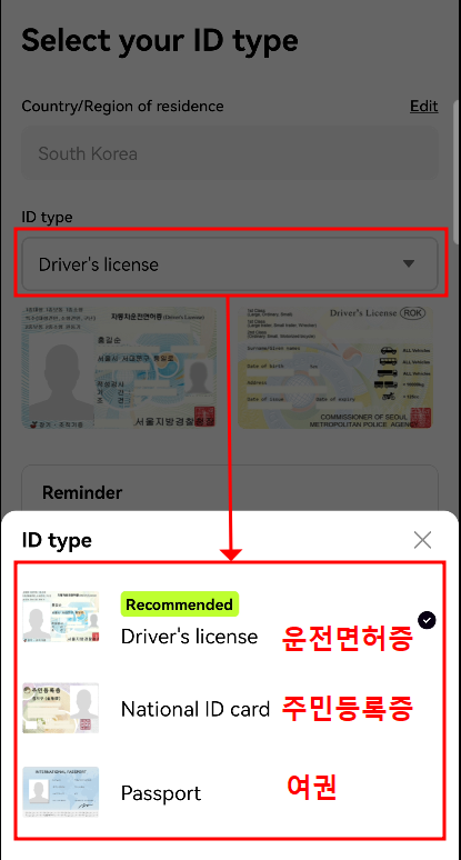 선택하신 신분증을 촬영해야 되기 때문에 신분증을 준비해 주시기 바랍니다.