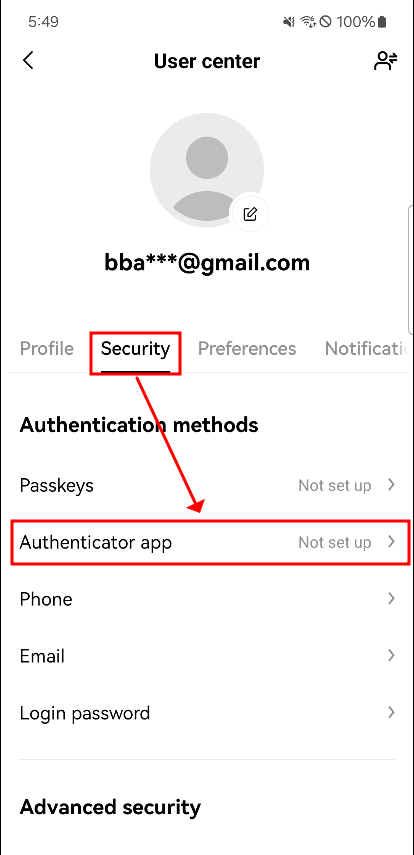 'Security'탭으로 이동한 뒤 'Authenticator app'을 눌러주고, 'Continue'를 눌러줍니다.