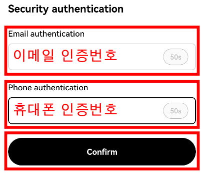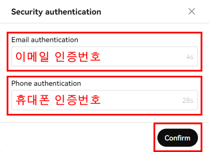 이메일과 휴대폰으로 받은 인증번호를 입력하고 'Confirm'을 누르면 전송이 끝나고 어느 정도의 시간이 지나면 업비트로 입금이 완료됩니다.