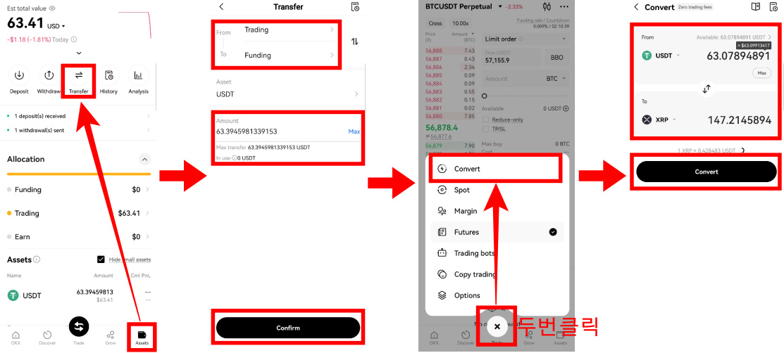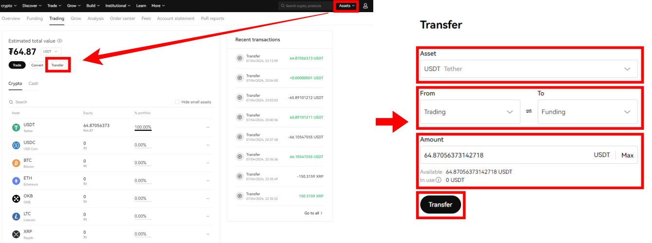 안녕하세요 비트몽입니다. OKX 거래소 입출금 방법과 USDT 변환 및 Trading 지갑 전송 방법에