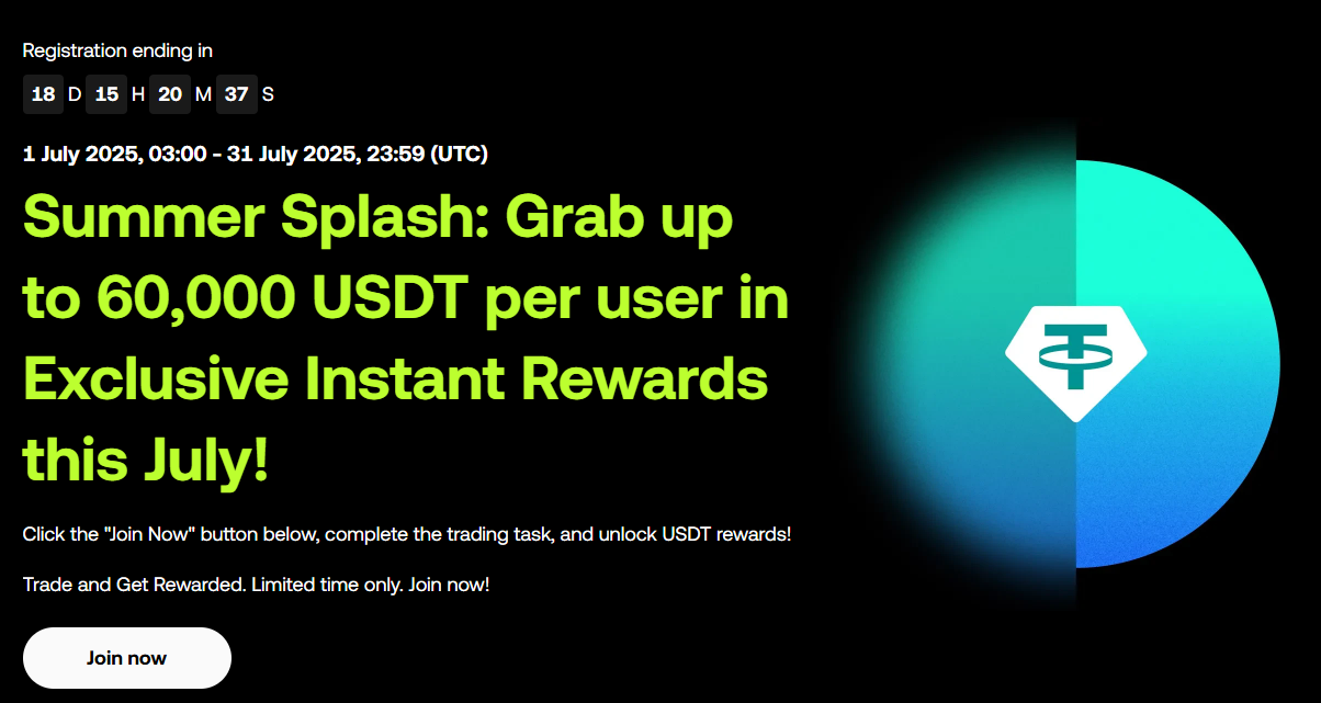 7월, 한 달! OKX에서 준비한 Summer Splash 이벤트에 참여하고 최대 60,000 USDT 즉시 보상과 BTC 미스터리 박스를 받아보세요.